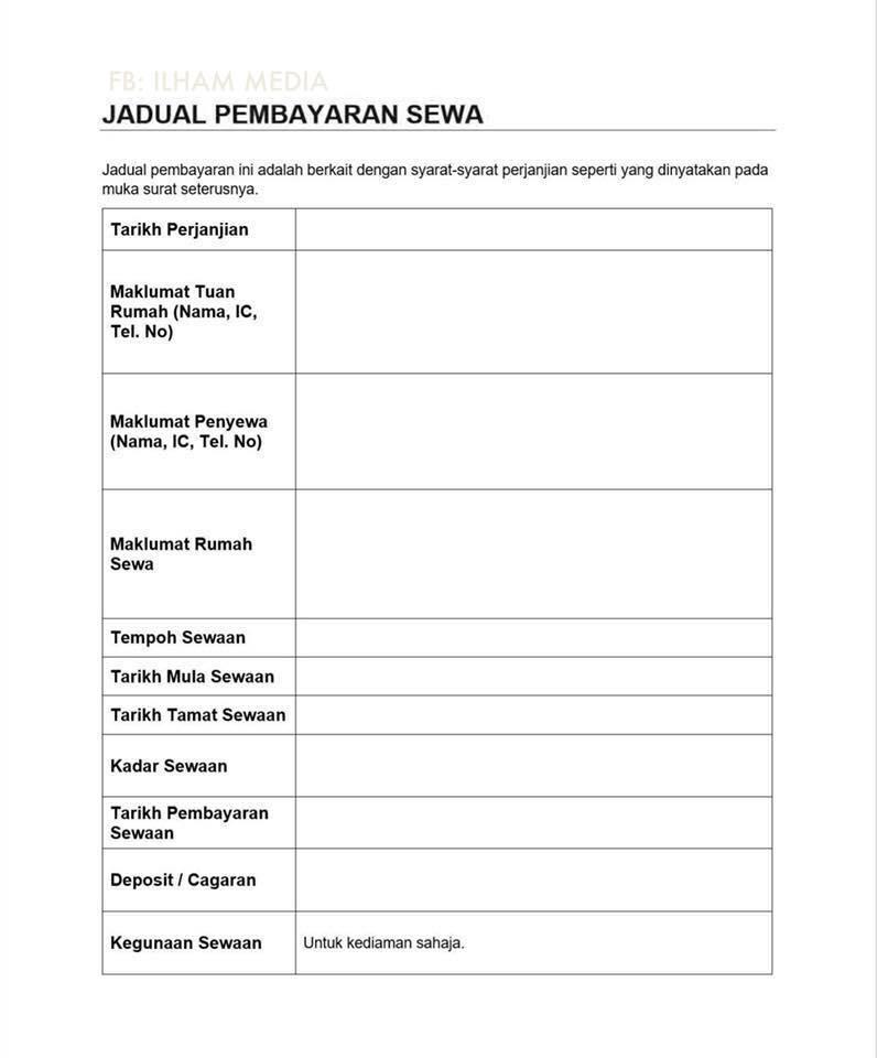 Surat perjanjian sewa rumah adalah digunakan untuk memberi perlindungan kepada tuan rumah seperti anda dan juga penyewa rumah sewa tersebut.